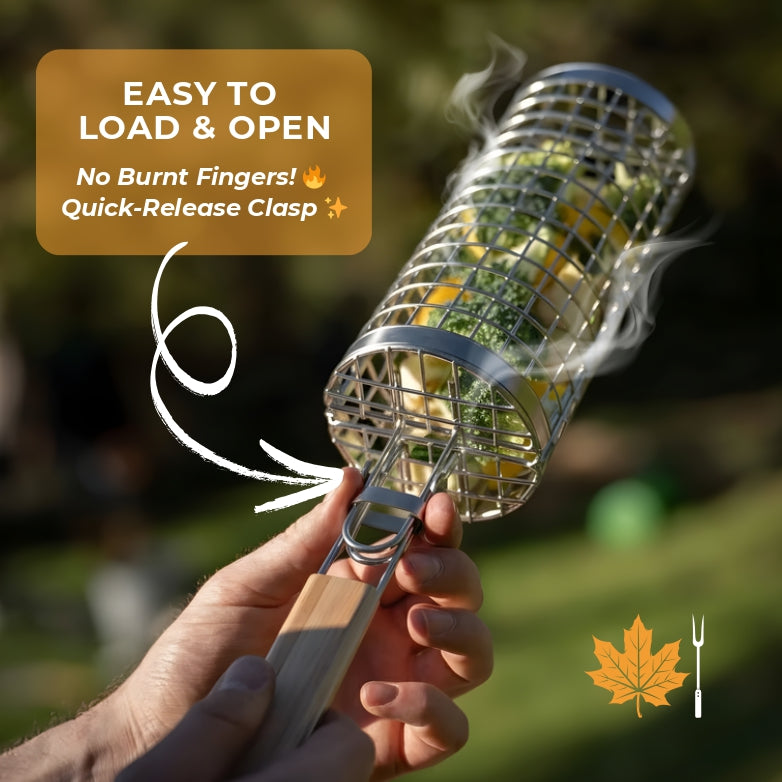 The quick-release clasp makes opening and closing effortless โ even when it's screaming hot. Just pull back the latch and pop it open. No wrestling. No awkward tong gymnastics. Just smooth, confident grilling from start to finish.